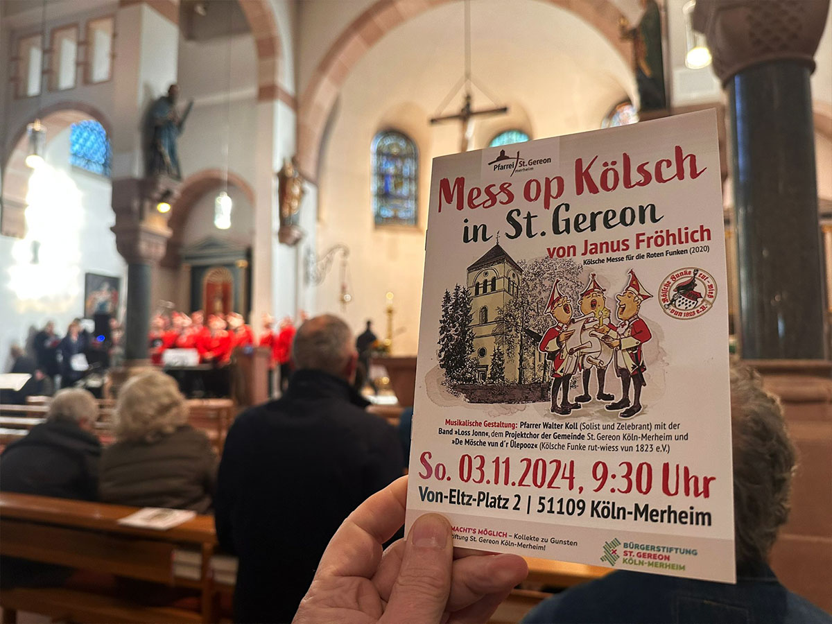 Zur Freude der vielen Besucher erklang am 3. November die »Mess op Kölsch« von Janus Fröhlich in der Pfarrkirche St. Gereon. Unter der Mitwirkung begeisterter Sänger und Musiker aus ganz Köln und Merheim.